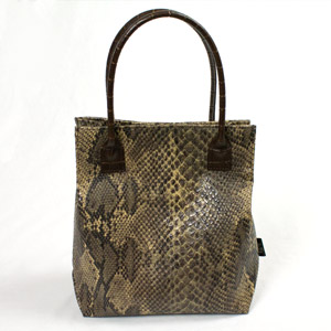 パイソン型押縦型トートバッグ (ダークブラウン)