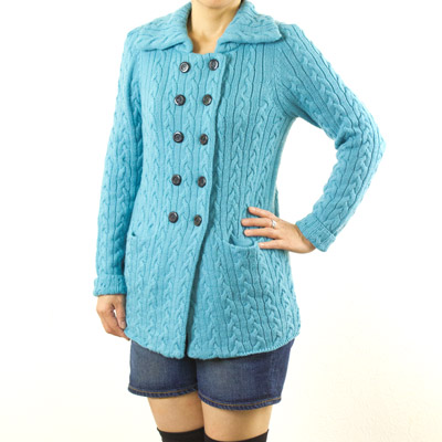 ウール100%のケーブル編みがお洒落なカーディガンです。